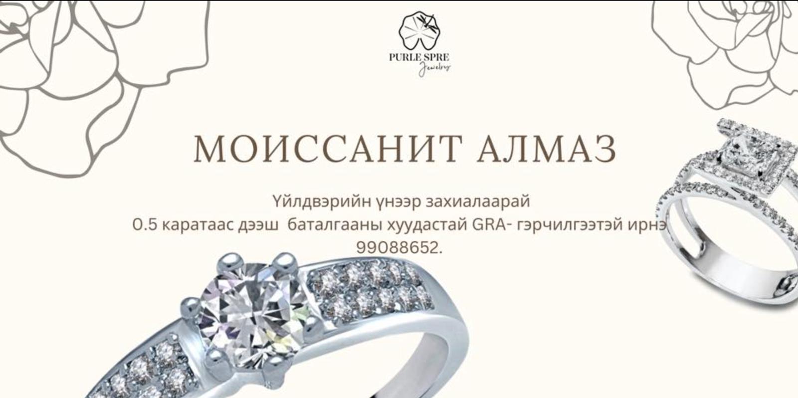Моиссанит алмаз нь 0.5 каратаас дээш өөр дээрээ сериал номертой, баталгааны хуудастай GRA- гэрчилгээтэй ирнэ. Орчин үед үнэт эдлэл, тэр дундаа сүйн бөгжинд хамгийн түгээмэл хэрэглэгддэг эрднийн чулуу . Алмазны гэрлийн хугарлын индекс 2.42 байдаг бол, моиссанит 2.65 байдаг. Энэ нь Моиссанит алмазнаас илүү гялтганадаг гэсэн үг юм.